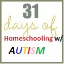 There you have it. For the next 31 Days , I will be blogging about homeschooling with autism. I have book reviews, guest posts and lots of giveaways. Lots and lots of giveaways. That’s my favorite part of the whole month! Hope you enjoy!