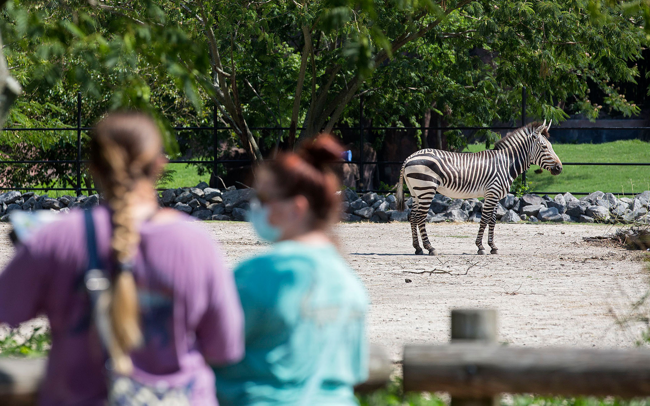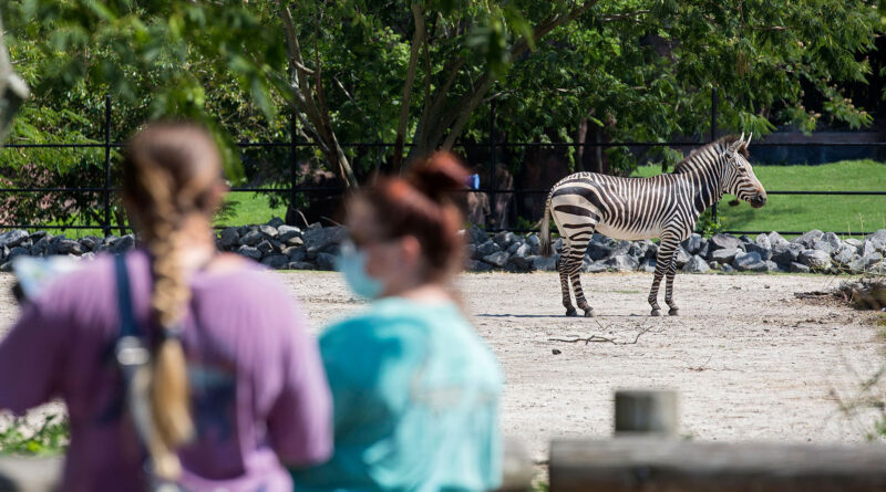 Guests walk past a zebra at the Virginia Zoo in Norfolk, Va. (Kaitlin McKeown/The Virginian-Pilot/TNS)