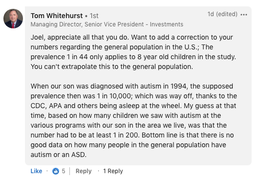 I chatted a while back with Walter Zahorodny, who headed up the New Jersey portion of the CDC Study. Yeah, we dove into where they got the numbers, and didn’t discuss ‘causation’. You can hear our conversation in this podcast episode: